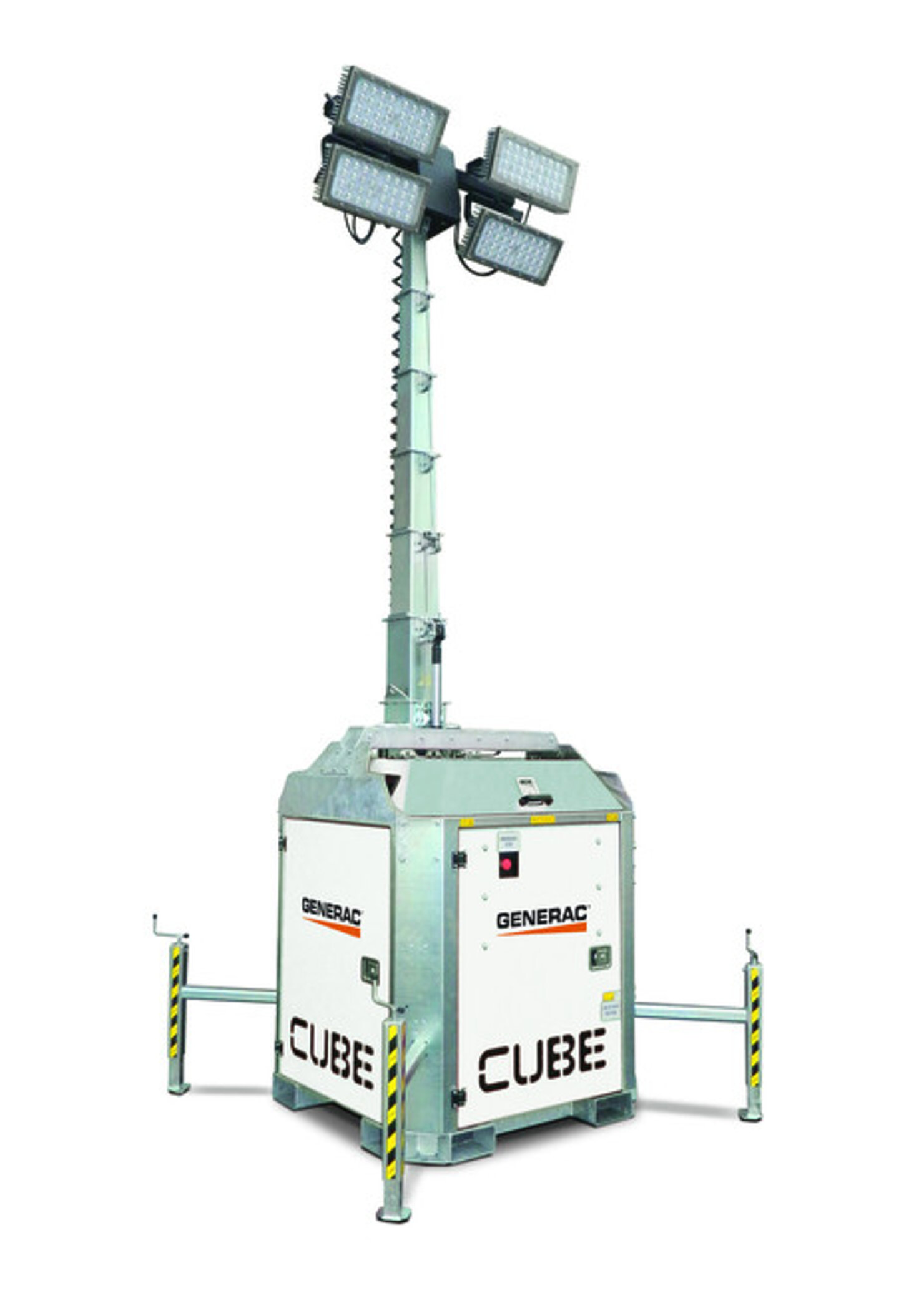 Der POWER CUBE (LED) hat ein hydraulisches Hebesystem und 146000 Lumen, Lampenleistung 4x 300 Watt, die Tankgröße beträgt 170 L, die Laufzeit 170 Stunden